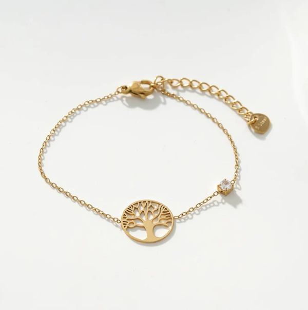 Giv en gave fuld af mening med Kærlighedens Træ, et elegant armbånd, der symboliserer livets og kærlighedens kraft. Det smukke forgyldte vedhæng, formet som livets træ, repræsenterer det stærke bånd mellem mor og barn, mens en strålende rhinsten glitrer som en påmindelse om de små øjeblikke, der lyser livet op.